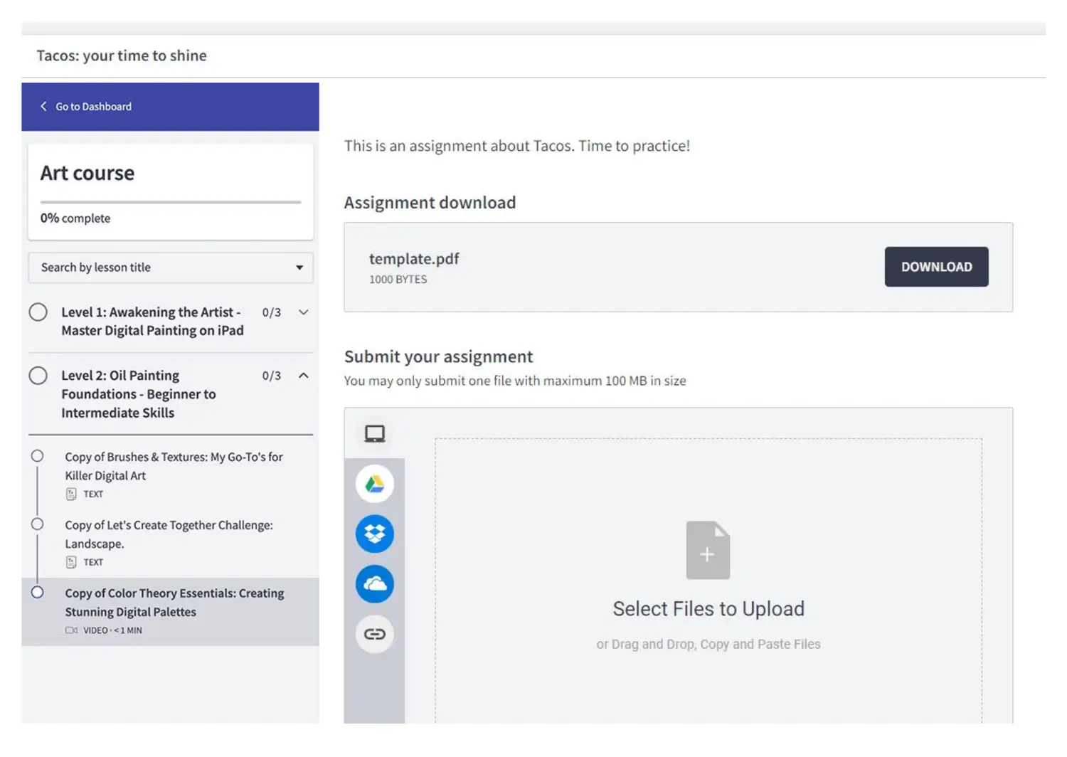 Upload your videos, PDFs, Google Docs, images, workbooks right into your Skillspring account.