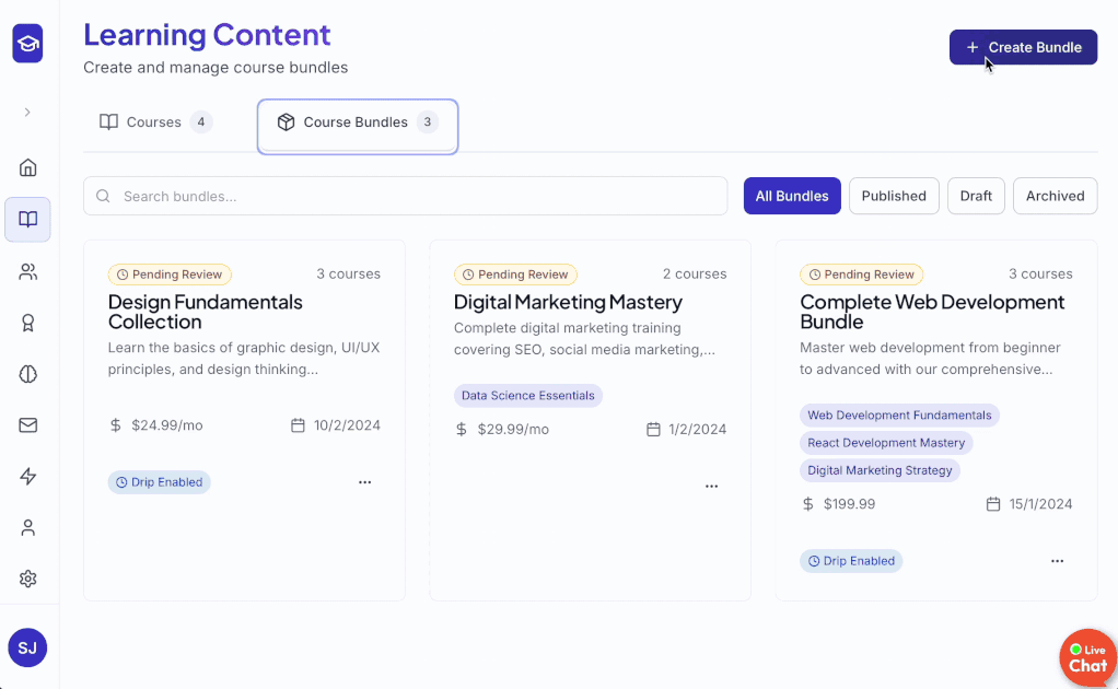 Turn your existing content into new revenue by bundling courses together. Whether you want to sell a full signature program or run a limited-time offer, Course Bundles make it simple.